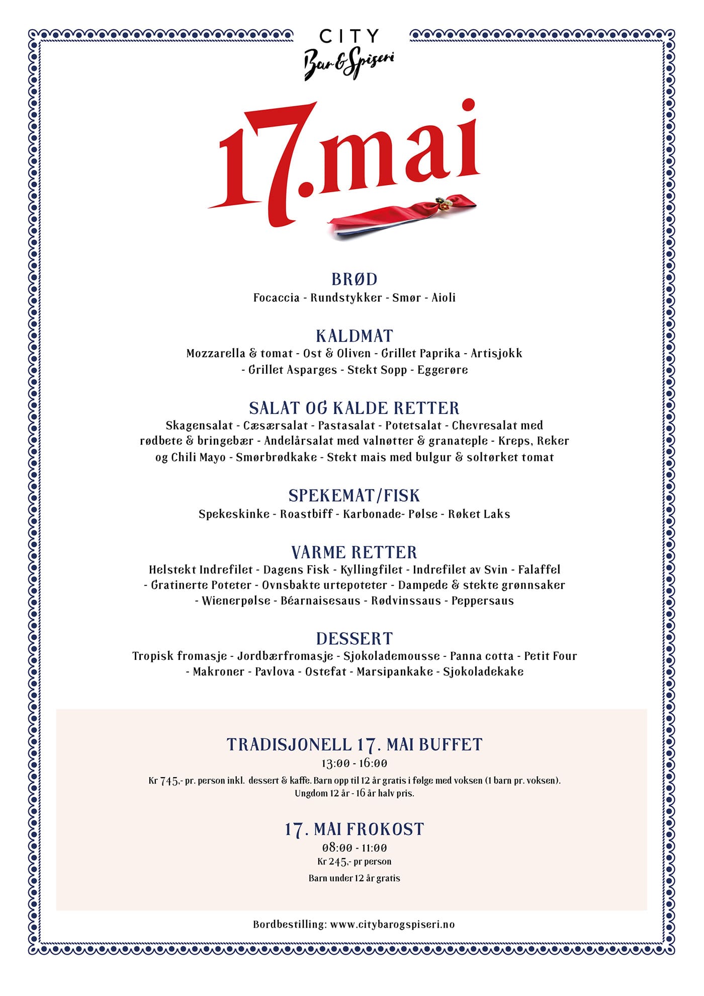 🇳🇴 17. MAI BUFFET – Kl 13.00 – 16.00 (gjestene kan sitte til de er ferdige)